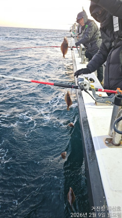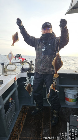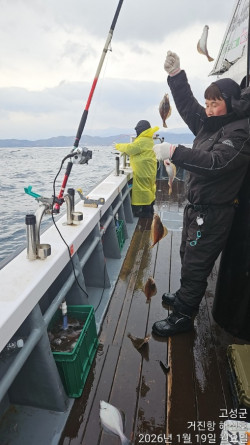 금일 19분 조사님 모시고 어구가자미 출조 다녀왔습니다.아침 첫 포인트부터 뜬어군이 형성되어채비만 내려도 꾸준히 올라오는 상황이었습니다.다만 아침 강추위와 바람으로 인해선실에 들어가 낚시를 쉬시는 조사님들이 계셔선장님은 속이 좀 타들어갔네요 ^^;;;;;;(잘 나올 때 잡으셔야 하는데…)오늘은 하루 종일 어구가자미가 꾸준히 나와주며조황은 아주 좋았습니다!장원 30kg차원 19kg배 전체 조과 약 200kg추운 날씨 속에서도 끝까지 함께해주신모든 조사님들 고생 많으셨습니다.감사합니다 !*** 거진항 해신호 예약 안내 ***예약문의 : 010-3193-2167오시는길 : 강원도 고성군 거진읍 거진항1길 62-2홈페이지 :h